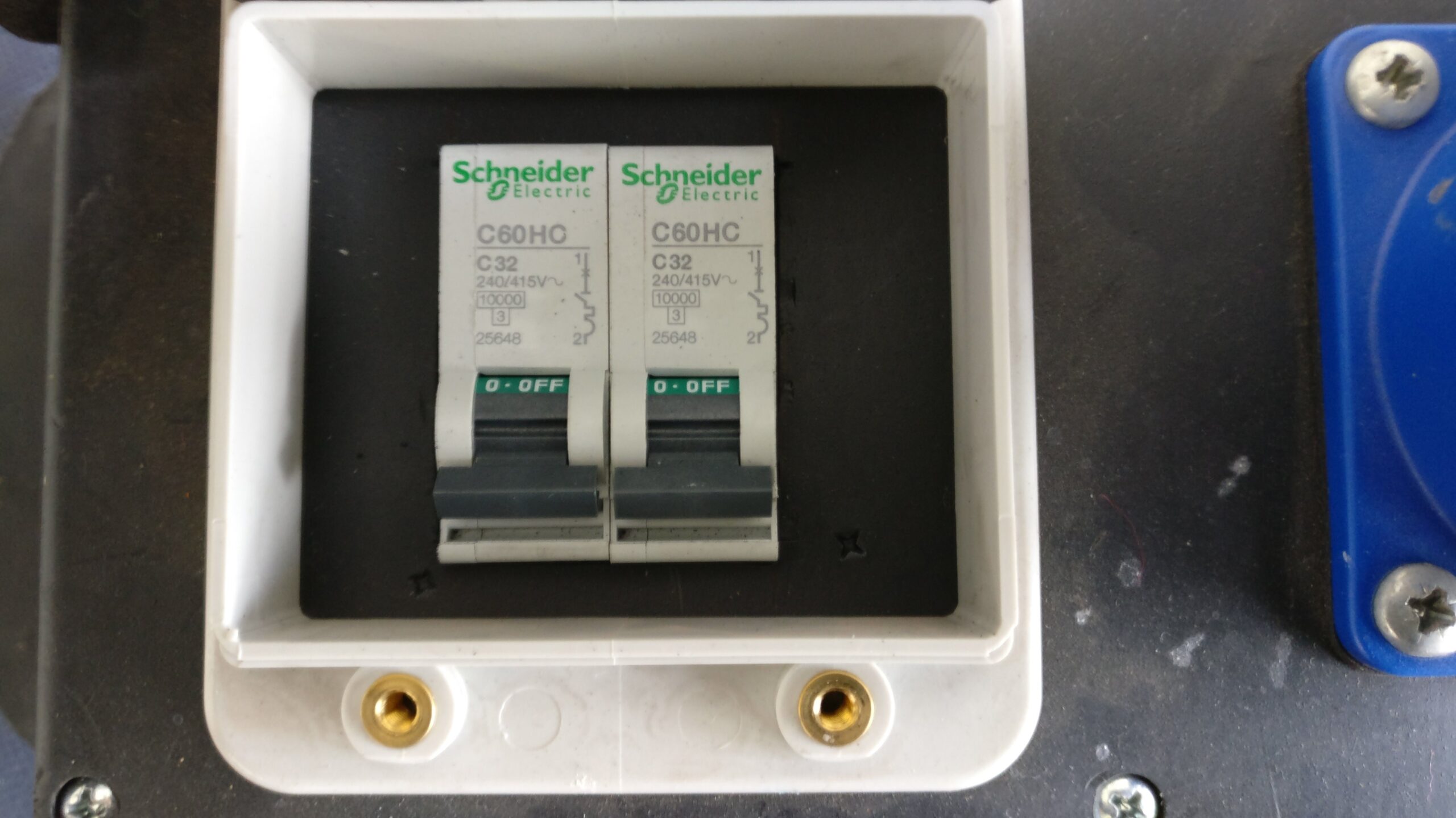 2 x 32amp single phase panel mount output sockets via MCB's
